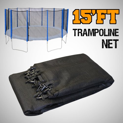 15'ft Trampoline Safety Net. Provide a fun and safe way for the whole family to enjoy the fitness and fun of jumping. If your trampoline net have shielded you for quite long and have been in torn or ruptured condition, replace them with our premium safety net to get your trampoline back to use safely. The trampoline net provides protection by preventing jumpers from bouncing out of the mat. The enclosure is designed to fit 15'ft Trampoline with 12 Poles.